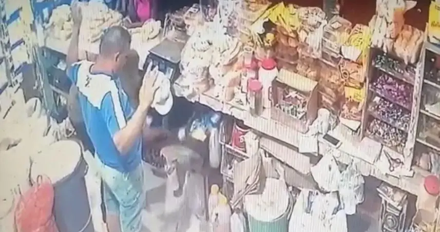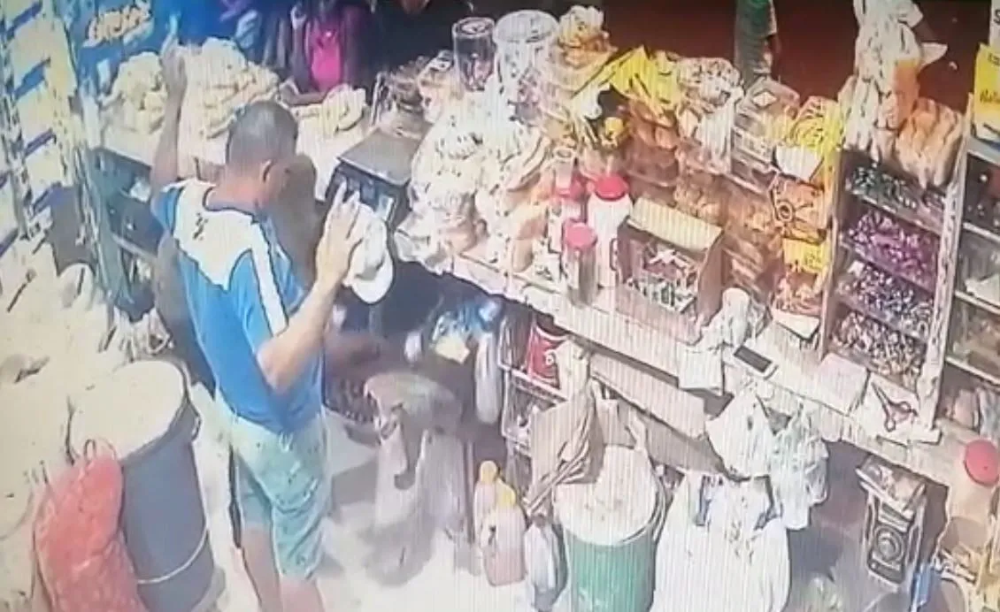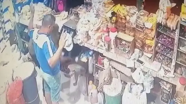 De acuerdo con el audiovisual que llegó a nuestro WhatsApp, se observa llegar a los individuos en horas de la noche armados, uno apunta los clientes que se encontraban en el lugar, mientras el otro que estaba encapuchado, pasó del lado del colmadero para buscar dinero en efectivo.