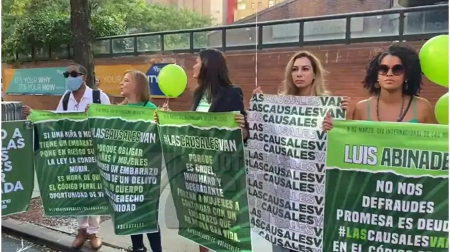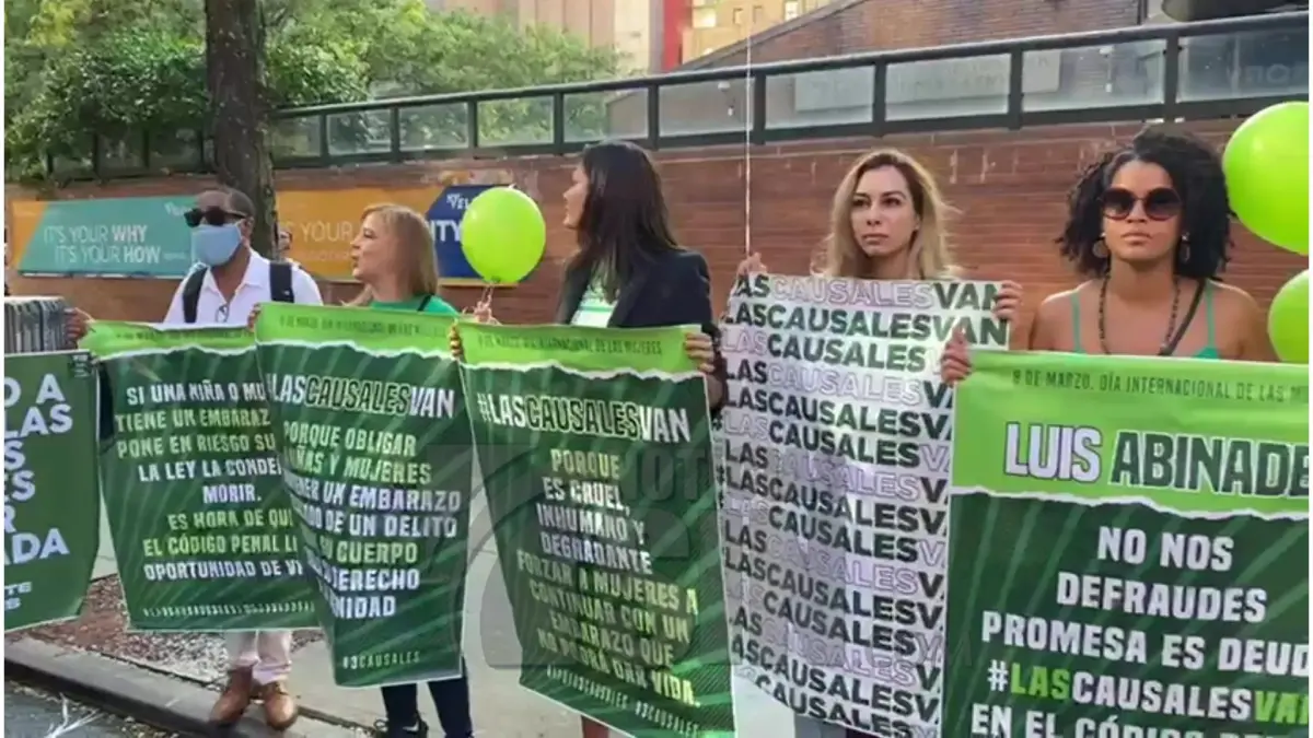 NEW YORK.- Mientras se espera que el presidente de la República, Luis Abinader, se reúna la tarde de este sábado con hijos de dominicanos nacidos en Estados Unidos, en The Armory, del Bronx, New York, grupos de la diáspora se apuestan frente a ese centro en reclamo de que sean incluidas las tres causales en el controvertido proyecto de ley del Código Penal Dominicano.