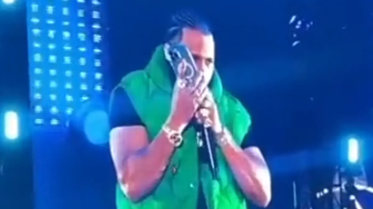 "Dios me lo bendiga a usted y su familia, perdón por la llamada, quiero darle las gracias por permitirme hacer este evento... por permitirle a la juventud de la República Dominicana que progrese", dice el artista urbano sosteniendo su teléfono celular y el micrófono para que la multitud escuche la llamada.