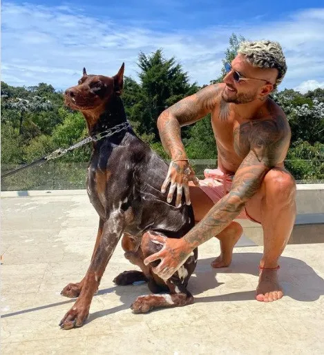 El artista colombiano quiere a sus fieles perros por encima de todas las cosas: sus dos huskies siberianos albinos, Bonnie y Clide, y el dóberman que se incorporó a la familia el año pasado, Buda. Sin embargo, eso no le libra de ganarse más de un susto, como ocurre en la casa de cualquier amante de los perros, y en esta ocasión ha recibido el mordisco de Buda en su rostro. Nada grave, según ha aclarado.