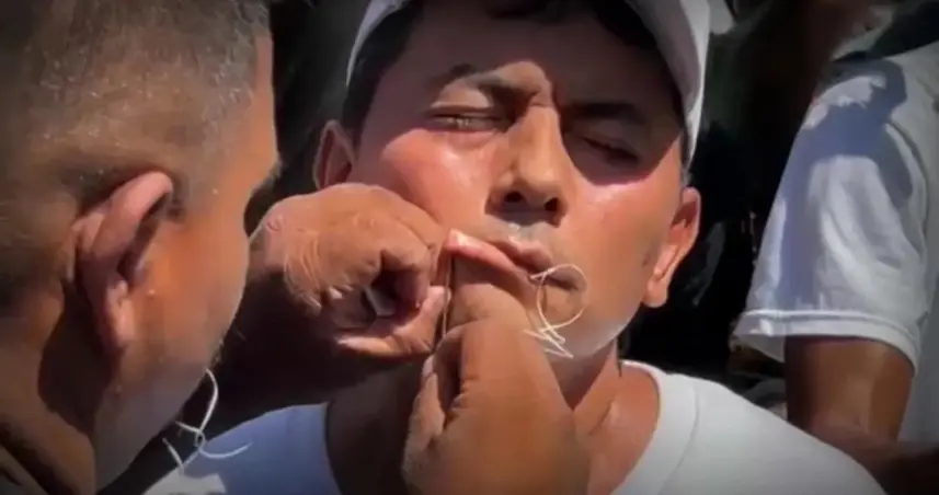 Los migrantes, en su mayoría centro y sudamericanos, tomaron aguja e hilo de plástico y se ayudaron entre sí a hilvanar sus labios, dejando apenas un pequeño espacio para poder consumir líquidos, según videos vistos por Reuters y el testimonio de un fotógrafo en el sitio.