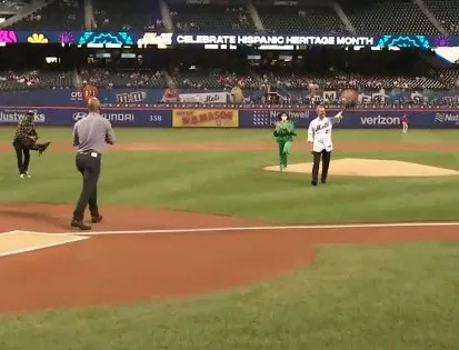 VIDEO: Momento en que Abinader lanza pelota en estadio Citi Field