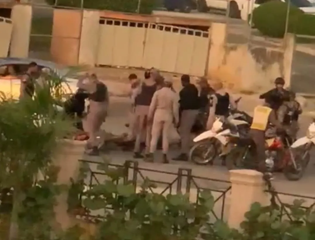 SANTO DOMINGO.- Quedó captado en video el momento en el que un agente policial patea el cadáver de un presunto atracador que fue abatido por miembros de la Policía Nacional en horas de la madrugada de este miércoles en la avenida Jacobo Majluta.