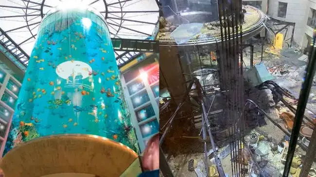 Video: Revienta en Berlín el mayor acuario cilíndrico mundial
