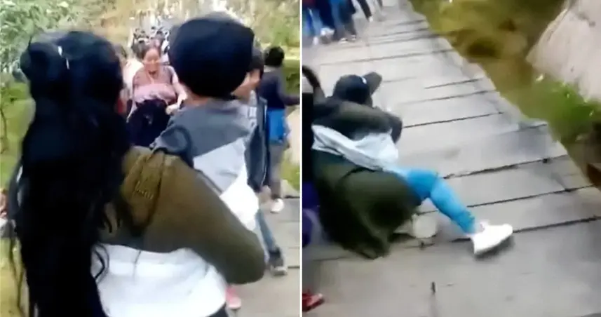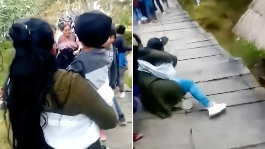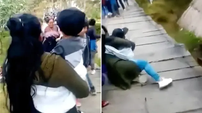 En un video, que circula por las redes sociales, se observa a una docena de personas atravesando el puente, una de ellas lleva a un niño en brazos y al menos otra sujeta a un menor de la mano. La cámara deja de enfocar cuando el puente se desprende y se escucha a una mujer gritando: "¡Mami, mami!".