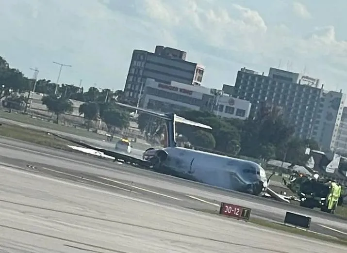 Redacción.- Luego de realizar un aterrizaje forzoso un avión que llegaba al Aeropuerto Internacional de Miami desde Santo Domingo, se incendió y destrozó una torre de comunicaciones y un pequeño edificio.