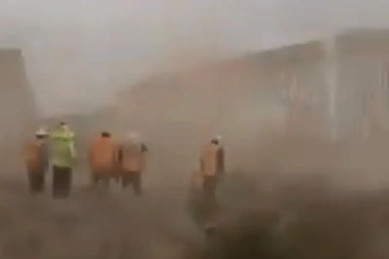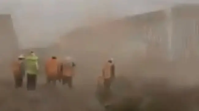 En la grabación se escucha el acero siendo golpeado por el viento, además del estruendo provocado por su caída.