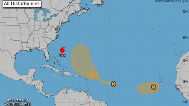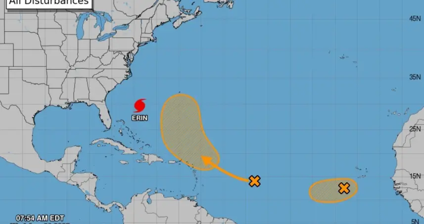 REDACCIÓN.– El Centro Nacional de Huracanes (NHC, por sus siglas en inglés) informó esta mañana que se mantiene una activa vigilancia sobre el Atlántico, el Caribe y el Golfo de México, ante la presencia del huracán Erin y el desarrollo de dos ondas tropicales que podrían evolucionar en los próximos días.