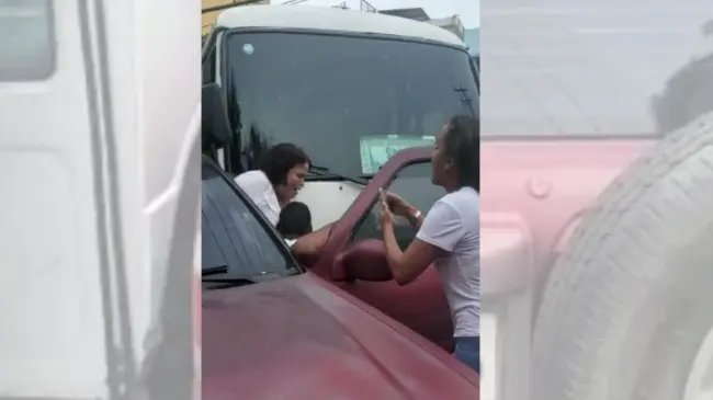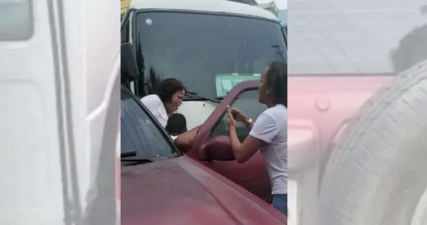 En varios audiovisuales que llegaron a esta redacción, se observa al conductor de una yipeta roja amenazar con un arma de fuego al chofer del transporte público , a lo que este aceleró y lo chocó dejándolo aplastado entre ambos vehículos.