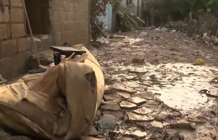 La basura que arrastró el rio Ozama permanece en las proximidades de las 67 viviendas inundadas, mientras los moradores verifican los ajuares que pueden salvar tras el paso de las lluvias.