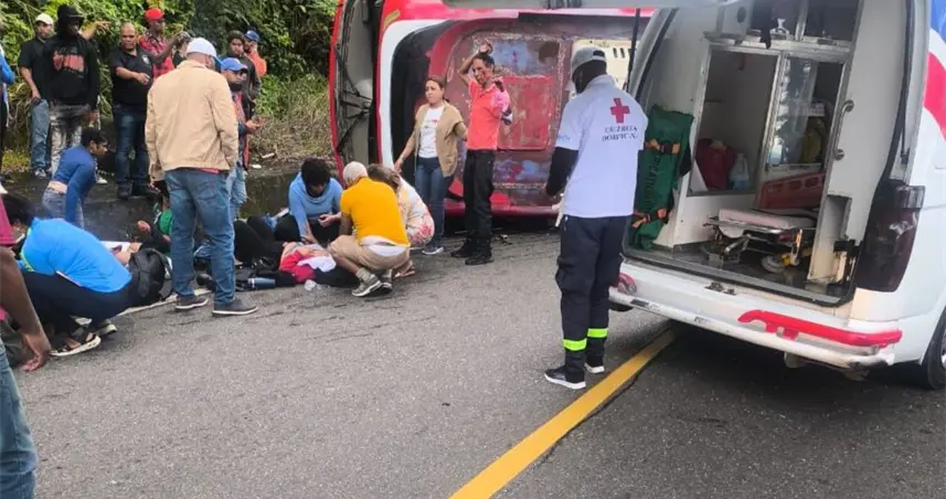 Al menos 14 personas resultan heridas tras volcadura de autobús en carretera Casabito-Constanza