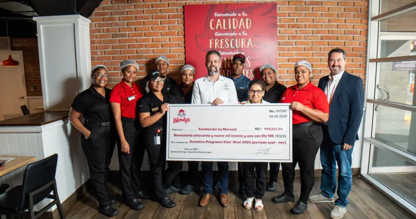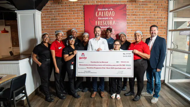 Santo Domingo.– Santo Domingo. – Como parte de su misión de generar un impacto positivo en la comunidad, Wendy’s, operada en el país por Grupo Raya, completó la décima edición de su programa de apoyo social, destinando un porcentaje de las ventas de su menú infantil a la Fundación La Merced. Este año el donativo asciende a RD$959,031, contribuyendo al desarrollo y bienestar de niños y adolescentes en situación de vulnerabilidad.