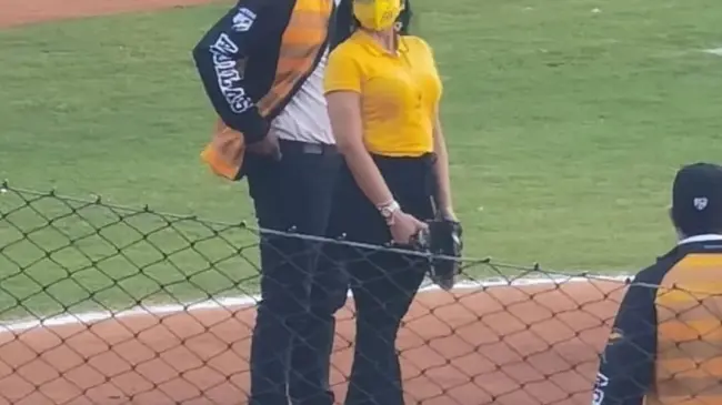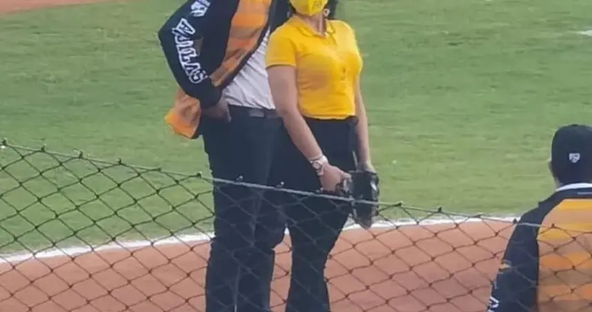 Wilson Camacho y Yeni Berenice lanzaron bola de honor en juego entre Águilas y Licey