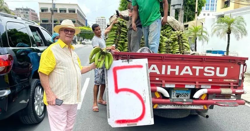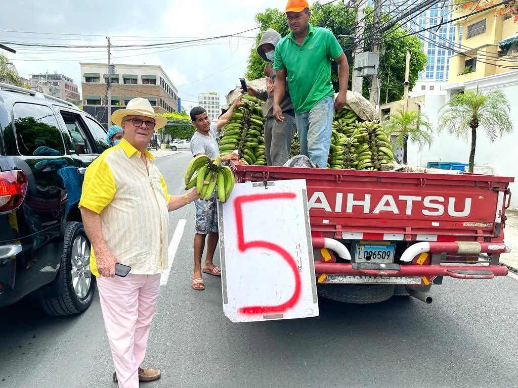 SANTO DOMINGO.- El expresidente de la Repúplica, Hipólito Mejía, publicó en su cuenta de Instragam una foto donde se le ve comprando plátanos a cinco pesos en una guagüita.
