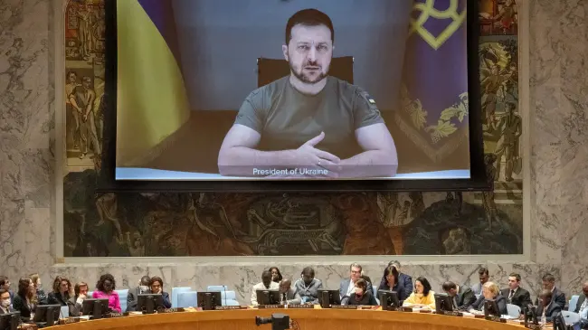 El dirigente ucraniano reclamó al Consejo de Seguridad una condena clara de estas tácticas y criticó que se permita a Rusia, parte del conflicto, bloquear cualquier acción en ese órgano gracias a su derecho de veto.
