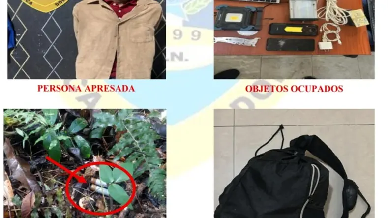 Le fue ocupado un teléfono celular marca Oukitel, color negro con amarillo, así como una mochila negra que contenía: un arma blanca cortopunzante, dos lámparas LED, un panel solar, una cámara con conexión WiFi, un teléfono celular marca Samsung (deteriorado), una extensión eléctrica tipo dúplex y un cargador para celular tipo C.