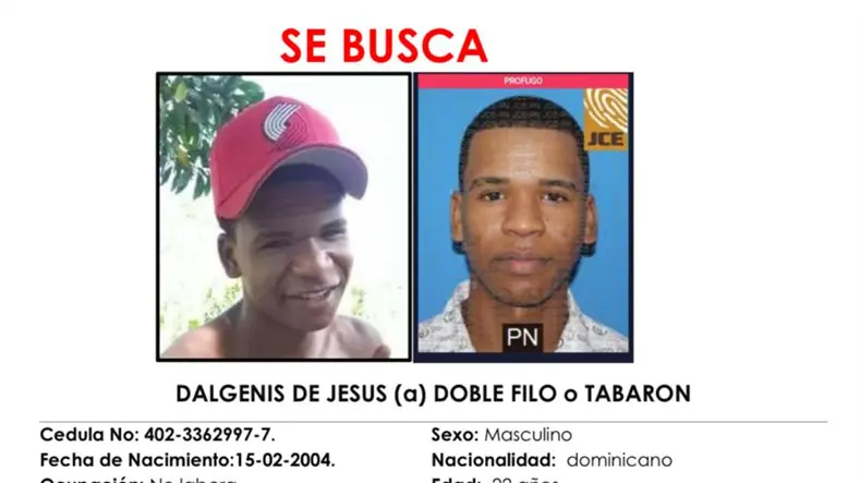 Santo Domingo.– La Policía Nacional informó el apresamiento en Villa Altagracia y sometimiento a la justicia del nombrado Dalgeni de Jesús, alias "Doble Filo" o "Tabarón", quien era perseguido tras tener en su contra la orden de arresto, ya que es señalado como el segundo participante en el secuestro de una mujer y hombre en Pedro Brand.