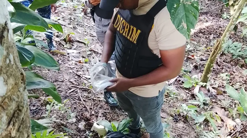 Posteriormente, una comisión policial se trasladó a las proximidades del Puente La Malena, en el Distrito Municipal La Cuaba, con el objetivo de localizar el arma de fuego utilizada por el detenido para amedrentar y someter a violencia a las víctimas.