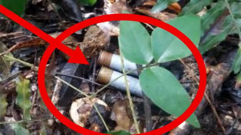 Si bien el arma no fue encontrada, los agentes localizaron dos cartuchos para escopeta, color gris, ocultos sobre un block de construcción camuflado entre la vegetación.