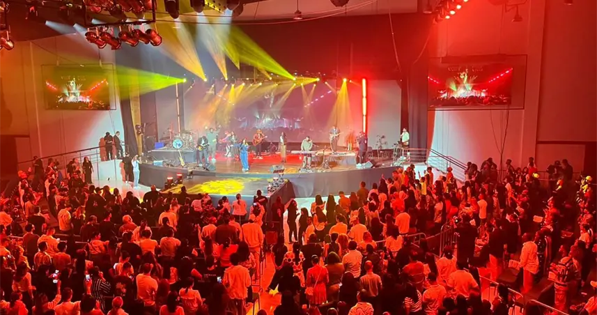 Kairo Worship durante la presentación de su concierto "Hermoso Momento" en República Dominicana, un evento que marcó su primer show en el país y el cierre oficial de su gira internacional Hermoso Momento World Tour, celebrando sus raíces dominicanas ante el público local.