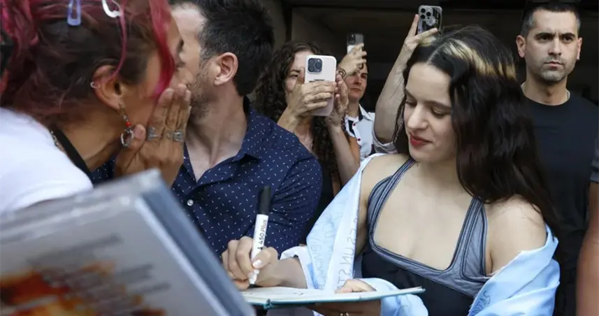 Este viernes, la española asistió al canal de streaming Luzu, en el barrio porteño de Palermo, donde fue recibida por una horda de fanáticos, a los que les firmó autógrafos con una sonrisa y buena disposición.