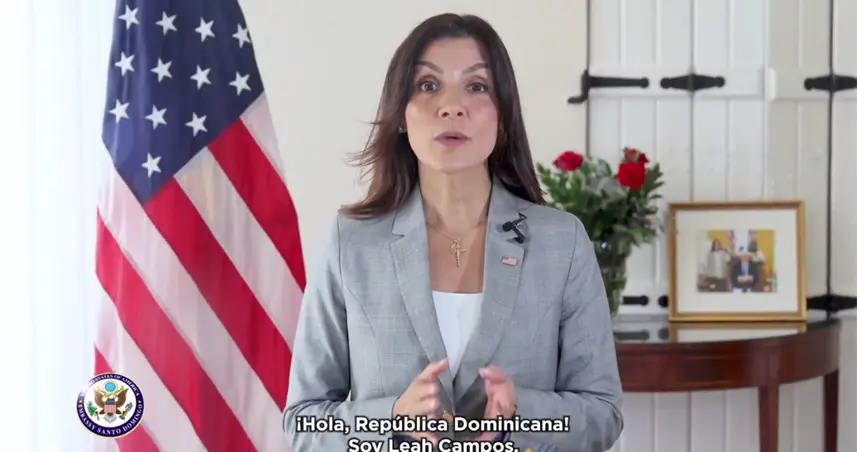 "Hola, República Dominicana, soy Leah Campos, la nueva embajadora de los Estados Unidos en este hermoso país", dijo Campos, visiblemente emocionada.
