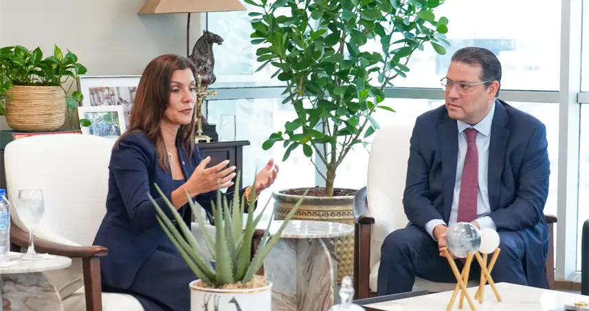 Santo Domingo.– El ministro de Industria, Comercio y Mipymes, Yayo Sanz Lovatón, recibió a la embajadora de los Estados Unidos en la República Dominicana, Leah Francis Campos, en un encuentro enfocado en seguir fortaleciendo los lazos de colaboración bilateral y la agenda estratégica en materia de comercio e inversión.