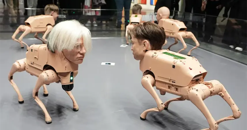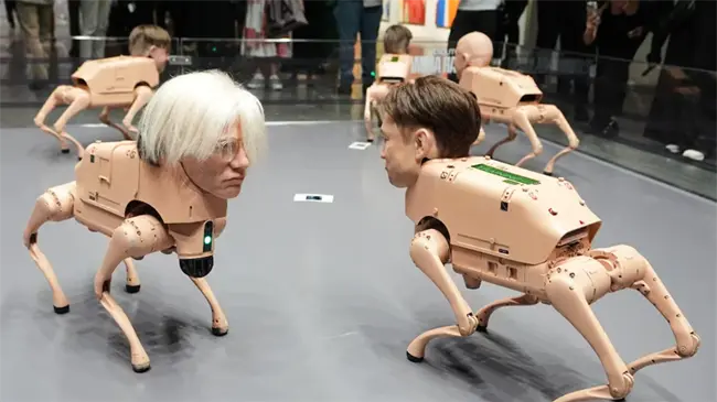 Perros robóticos con rostros de Musk, Bezos y Picasso acaparan la atención en Art Basel