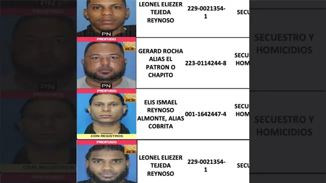 Entre los antisociales activamente buscados figuran Leonel Eliezer Tejeda Reynoso, acusado de secuestro; Gerard Rocha, alias "El Patrón" o "Chapito", vinculado a secuestros y homicidios; y Elis Ismael Reynoso Almonte, alias "Cobrita", acusado de secuestros y homicidios. Aunque actúan de manera independiente, todos se dedican a actividades criminales de gran impacto social.