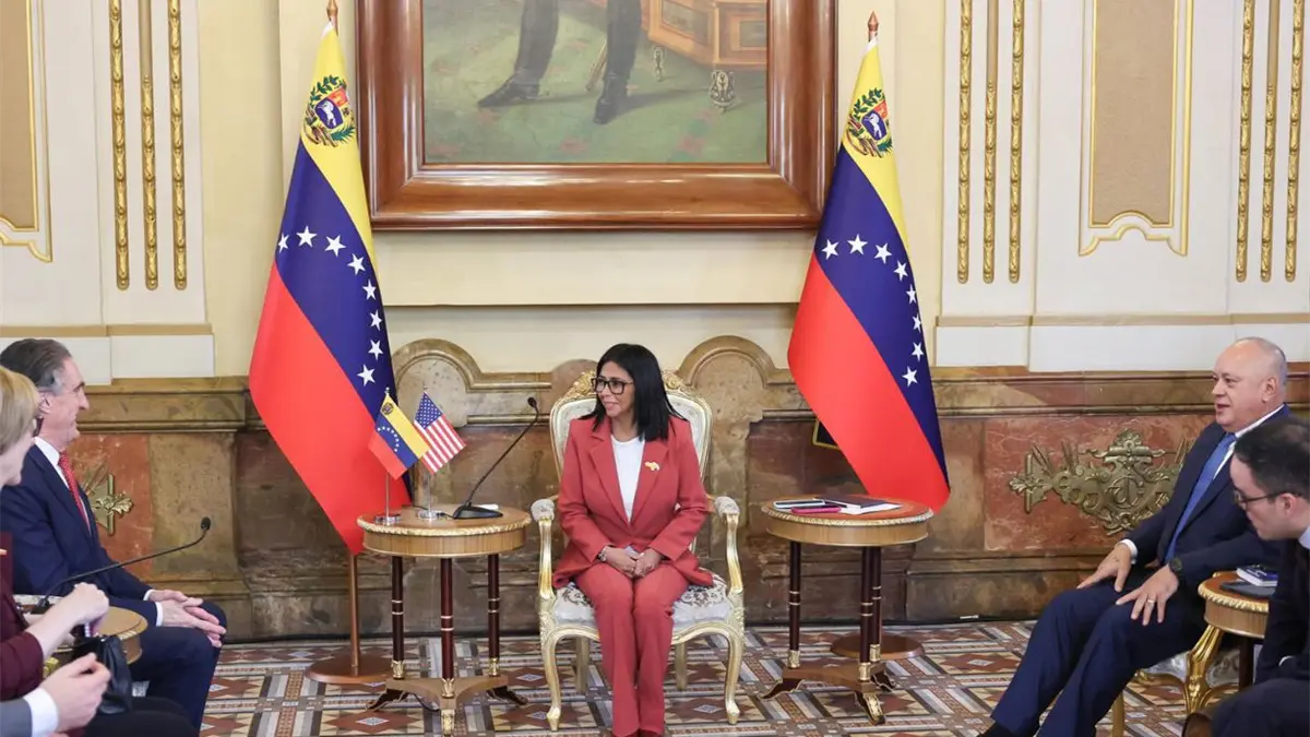 Caracas.– La presidenta encargada de Venezuela, Delcy Rodríguez, recibió este miércoles en Caracas al secretario de Interior de Estados Unidos, Doug Burgum, para abordar temas de interés en la cooperación energética y fortalecer el sector minero.