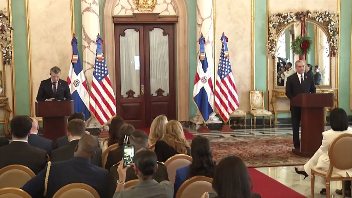 Santo Domingo.– El secretario de Defensa estadounidense, Pete Hegseth, llegó a la República Dominicana cerca del mediodía de este miércoles por el Aeropuerto Internacional de las Américas y se trasladó al Palacio Nacional, donde sostuvo una reunión a puerta cerrada con el presidente Luis Abinader.